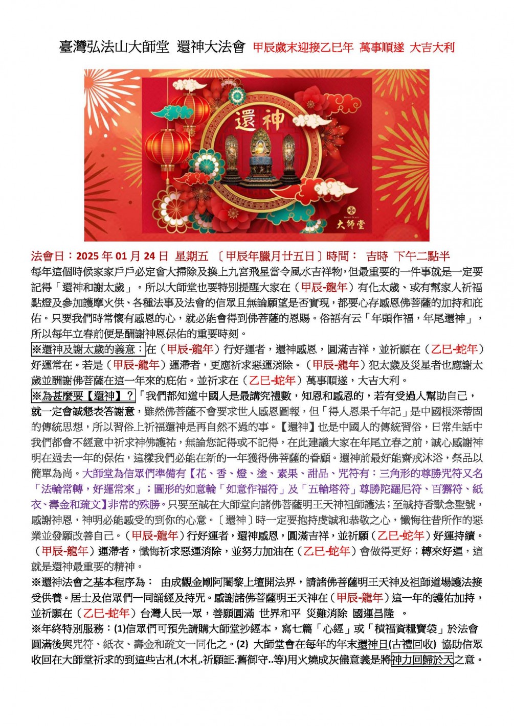 臺灣弘法山大師堂 還神大法會 甲辰歲末迎接乙巳年 萬事順遂 大吉大利