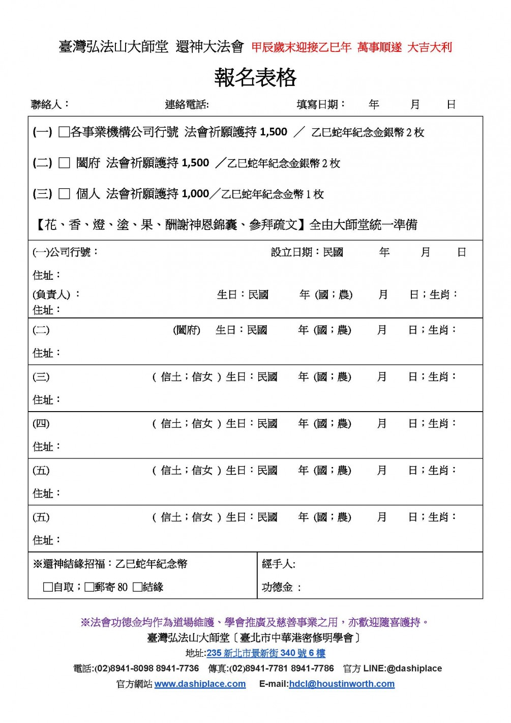 法會日:2025年01月24日 星期五 [甲辰年臘月廿五日]時間: 吉時 下午二點半