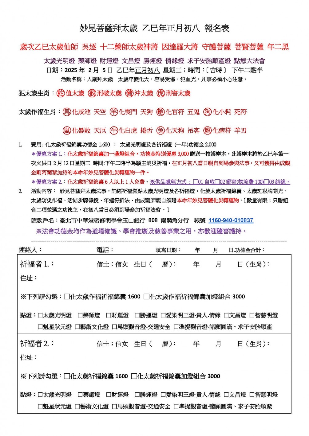 化太歲祈福錦囊功德金1,600