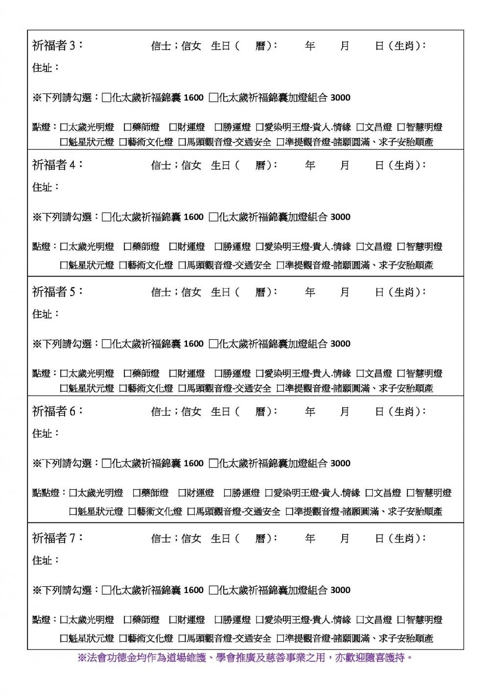 ※法會功德金均作為道場維護、學會推廣及慈善事業之用,亦歡迎隨喜護持。