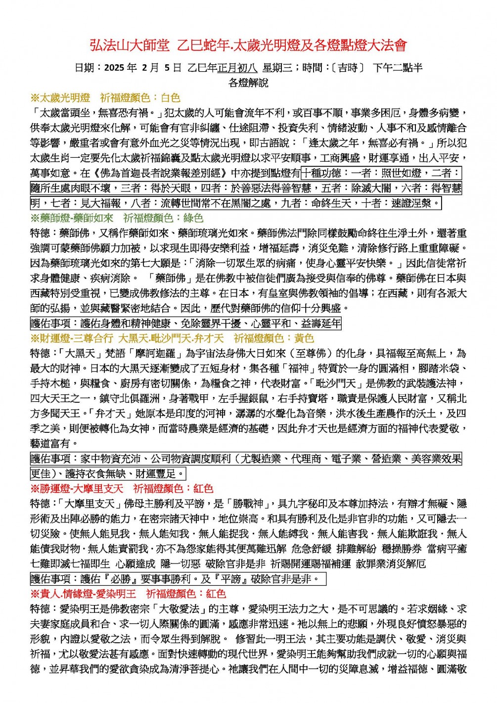 太歲光明燈 藥師燈 財運燈 文昌燈 勝運燈 情緣燈 求子安胎順產燈 點燃大法會