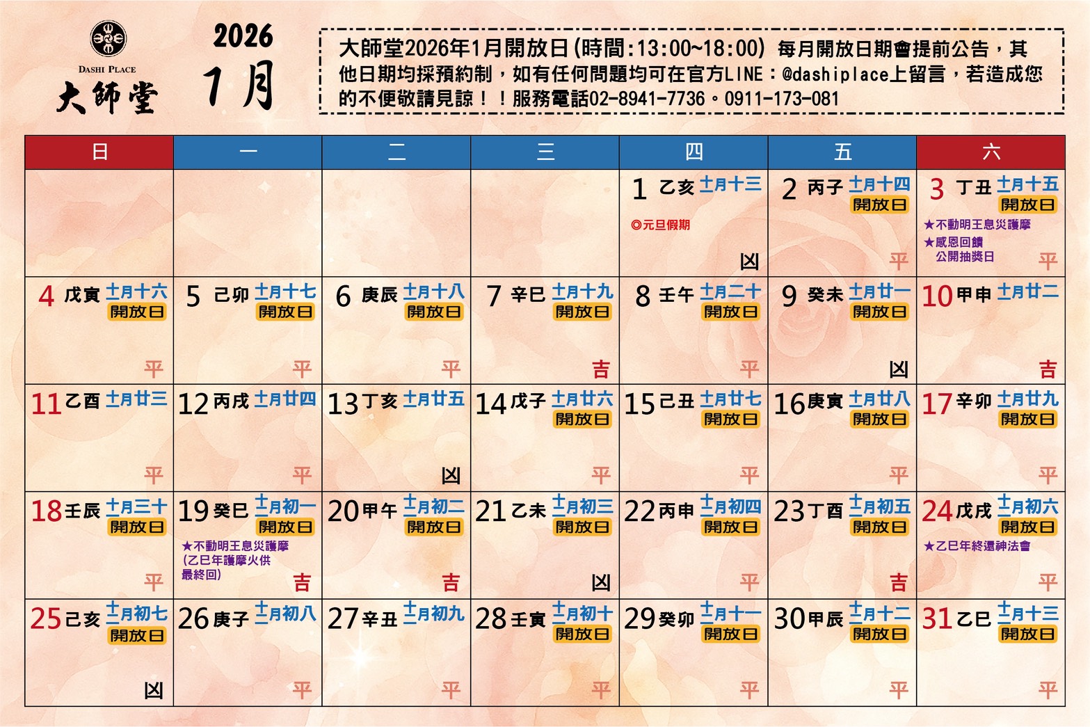 大師堂祝福大家 2026元旦快樂~1月1日公休 告成不便,敬請見諒