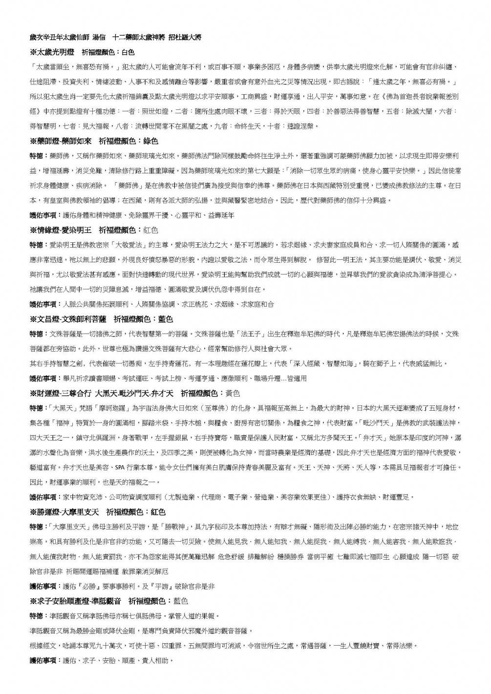 - 費用: 化太歲祈福錦囊功德金1,600 ; 太歲光明燈及各祈福燈 (一年)功德金2,000