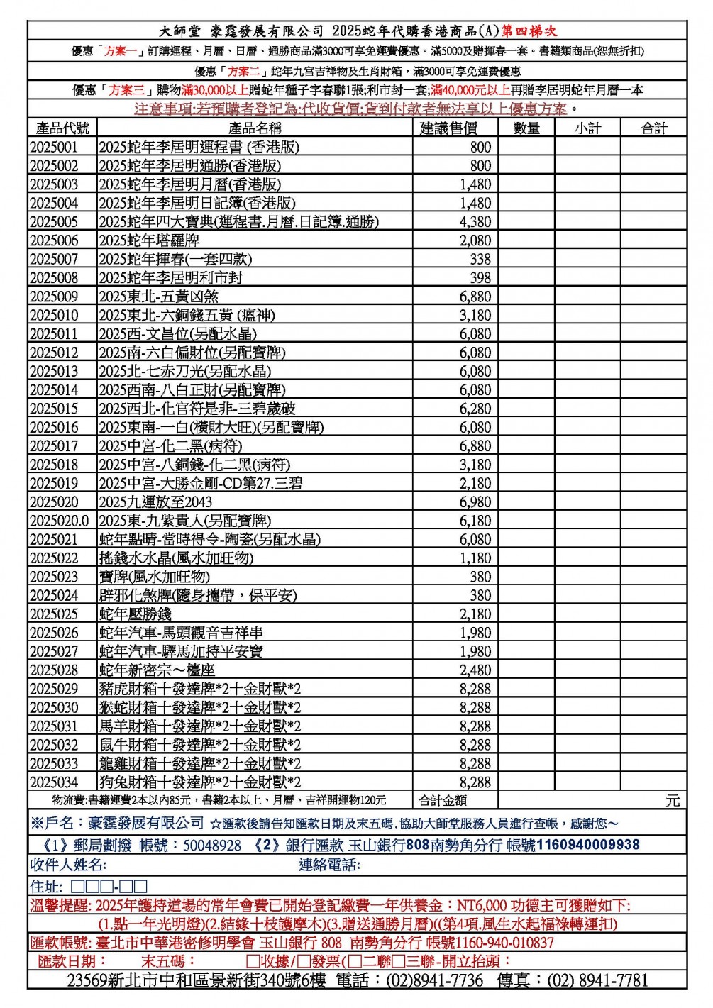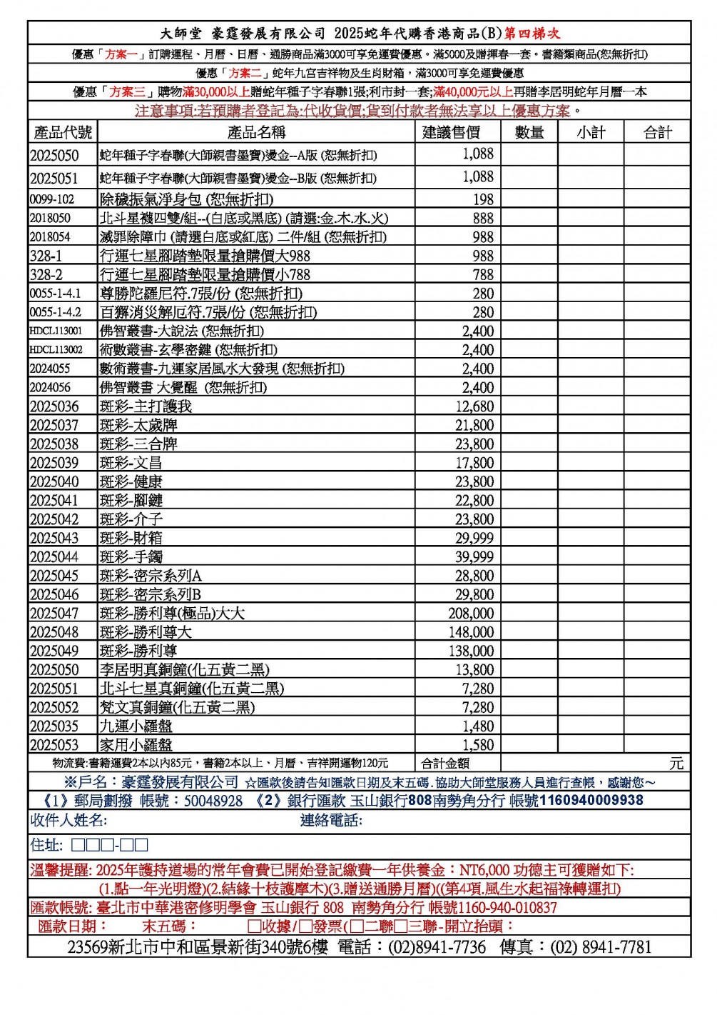 [公告]大師堂因有豪霆發展和修明學會等⋯帳戶,匯款時常會出錯,所以統一匯入個人帳戶後,由會計區分開立發票及收據。(或在匯款前先確認帳戶,以免發生錯誤,若造成不便敬請見諒)。