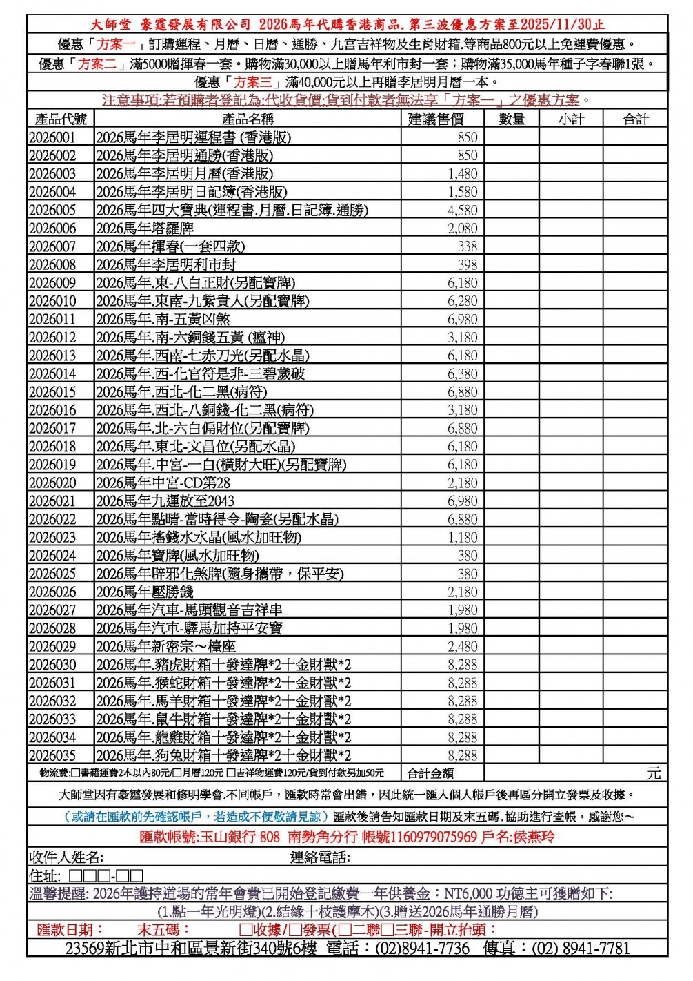 2026馬年香港商品.代購第三波.優惠方案2025/11/1至11/30止