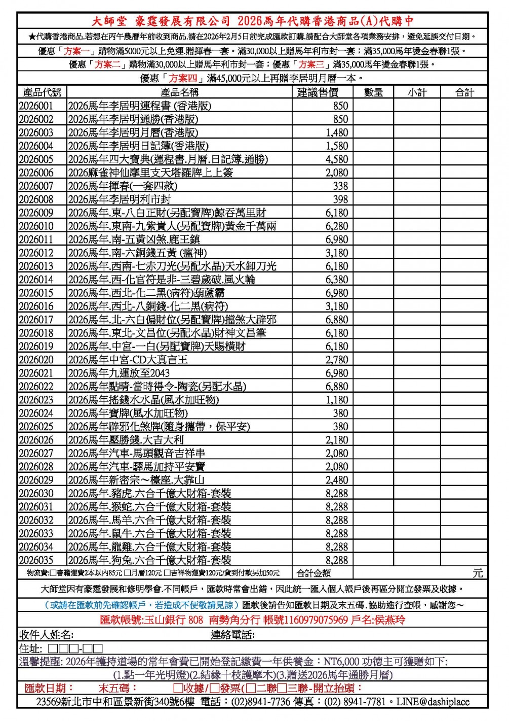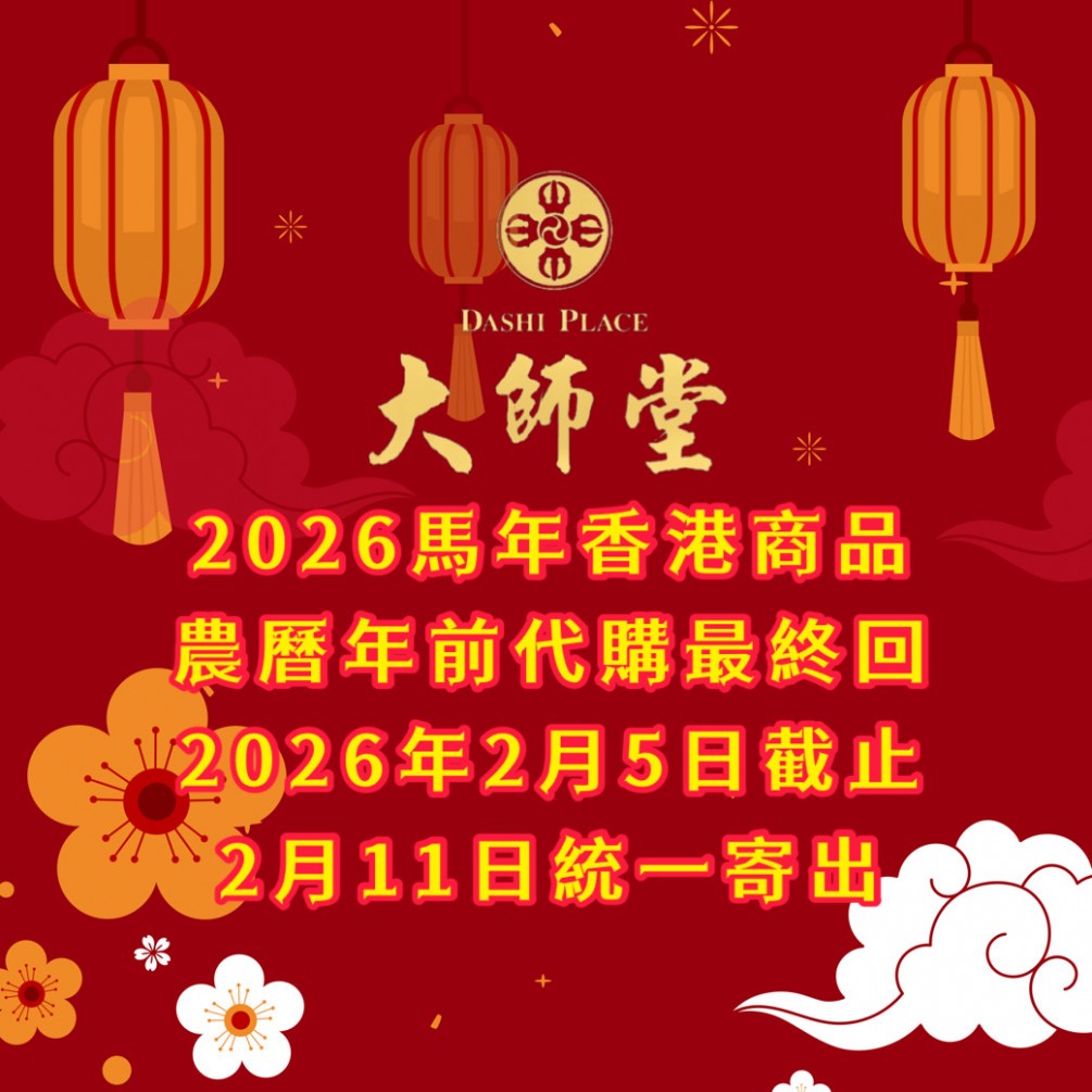 ★代購香港商品.若想在丙午農曆年前收到商品.請在2026年2月5日前完成匯款訂購.請配合大師堂各項業務安排,避免延誤交付日期。