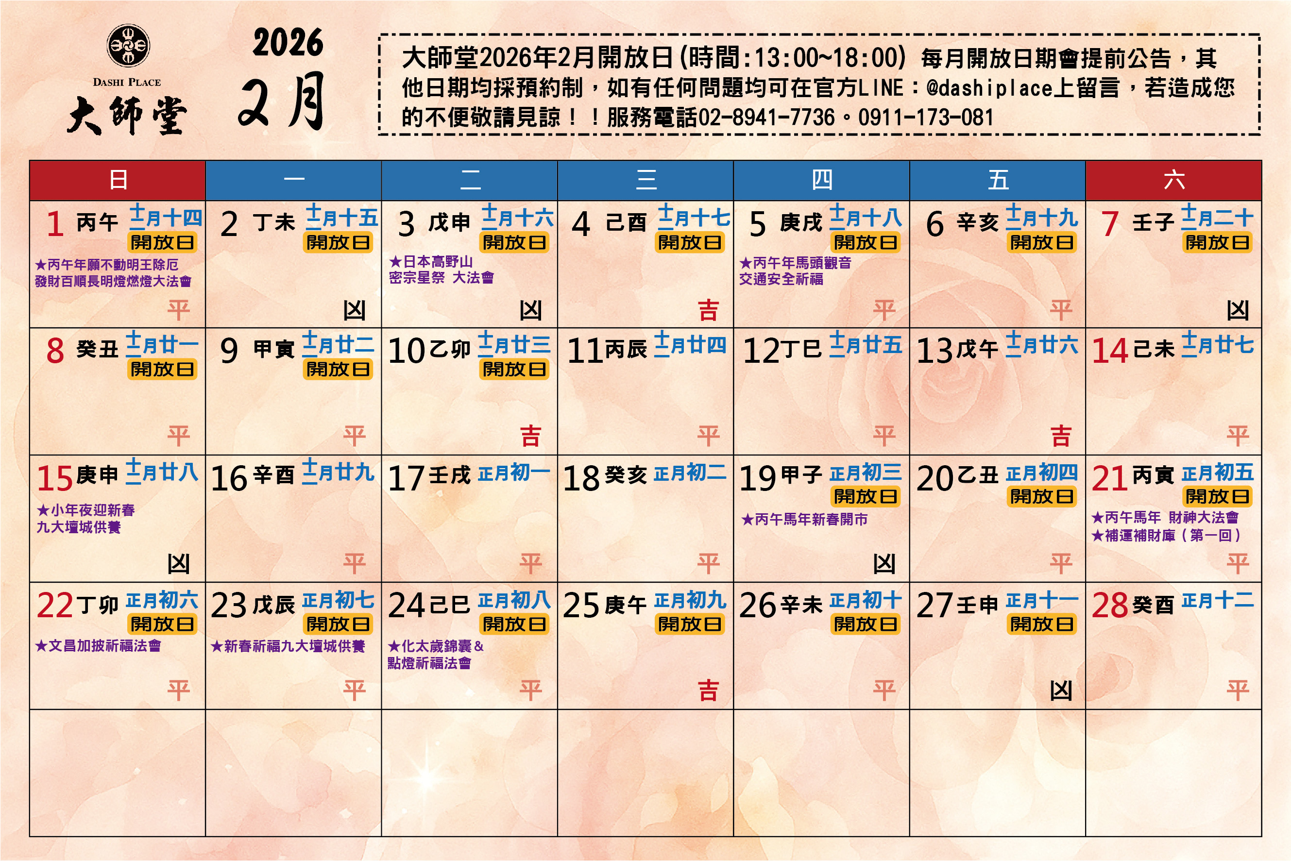 2026年2月大師堂開放日