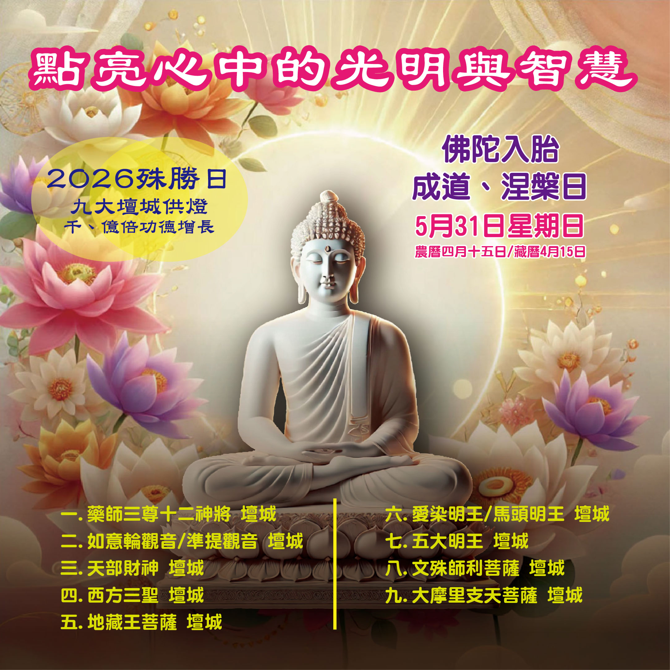 2.「佛陀入胎、成道、涅槃日」2026年5月31日星期日 農曆四月十五日
