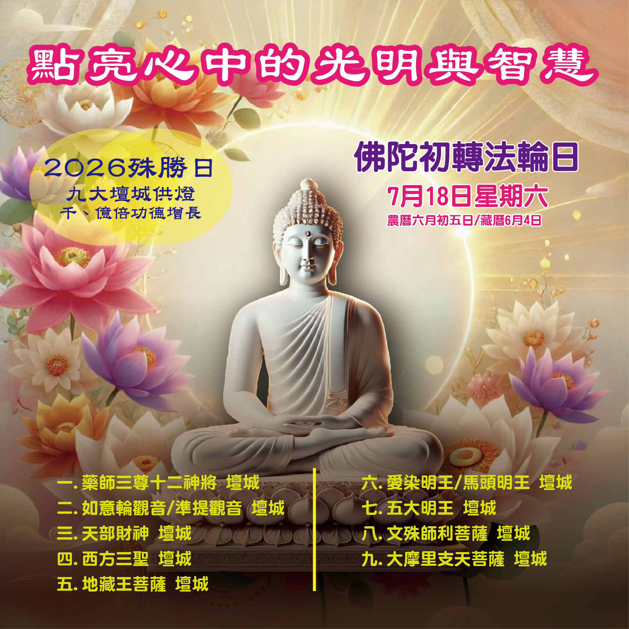 3.「佛陀初轉法輪日」2026年7月18日星期六 農曆六月初五日