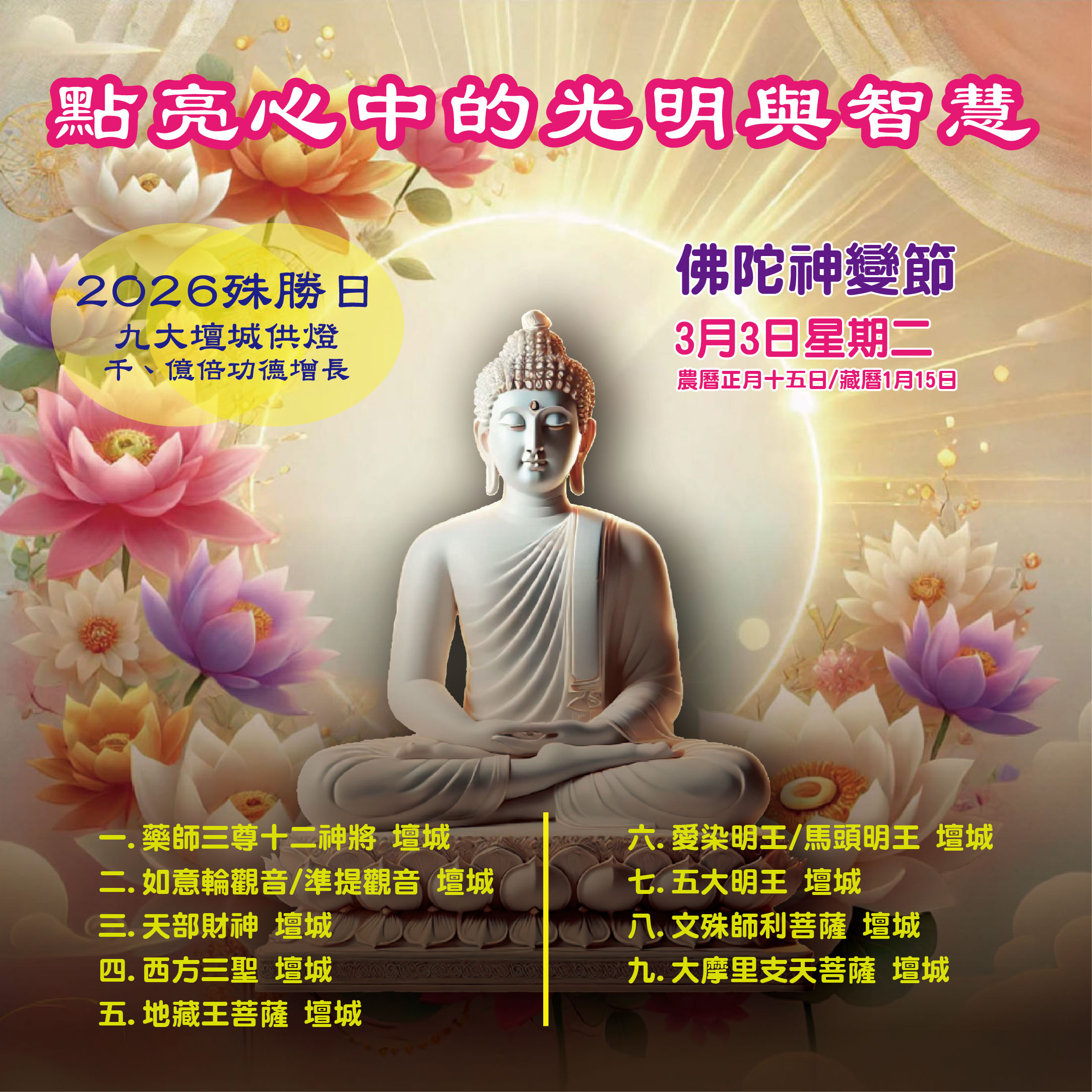 1.「佛陀神變節」 2026年3月3日星期二 農曆正月十五日